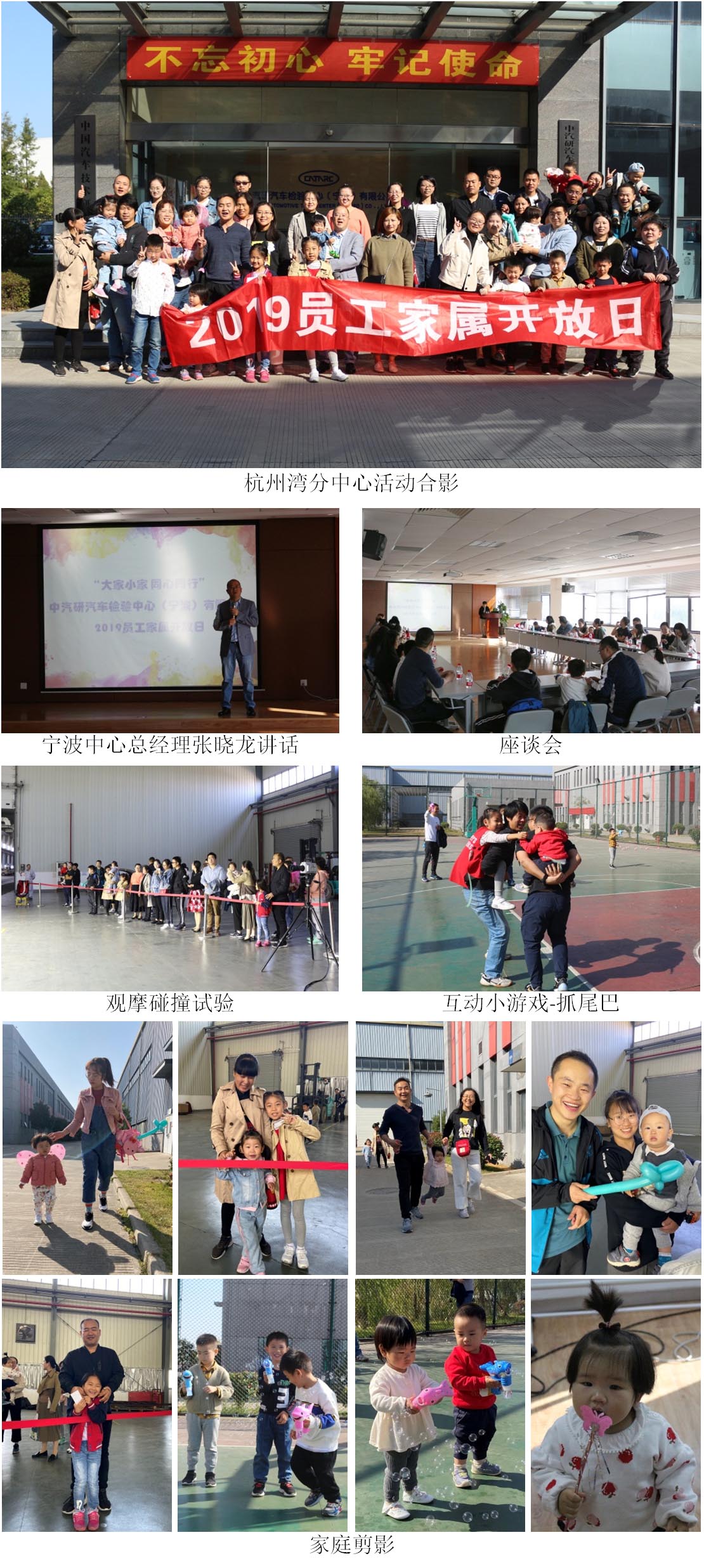11月17日,寧波汽車檢測中心(簡稱寧波中心)2019員工家屬開放日活動(dòng)暖心收官。本次活動(dòng)旨在加強(qiáng)公司與員工、與家屬間的雙向溝通交流,進(jìn)一步增強(qiáng)員工歸屬感。在寒冷的冬日里,“大家”牽手“小家”,員工與家屬一起走進(jìn)鄞州分中心、杭州灣分中心、梅山分中心,共同度過了美好難忘的周末時(shí)光。