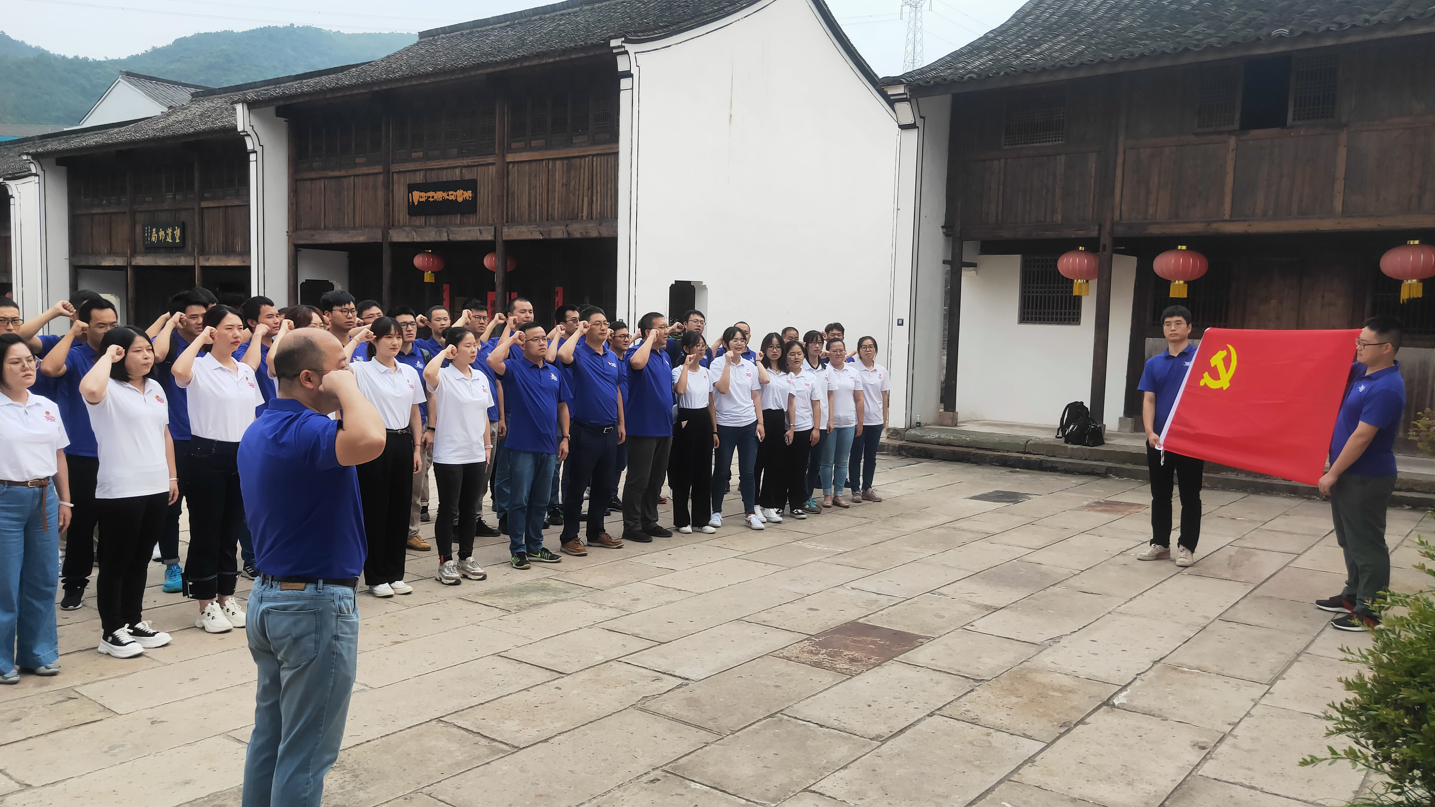 在講解員介紹下,大家懷著無比崇敬的心情,聆聽陳望道先生翻譯《共產(chǎn)黨宣言》的艱苦奮斗過程以及蘸著墨汁吃粽子的動(dòng)人故事,“真理的味道是甜的”讓所有黨員為之動(dòng)容,更真切感受到了真理的力量——墨汁為什么那樣甜?因?yàn)檎胬硎怯形兜赖?,甚至比紅糖更甜。隨后,大家觀瞻了陳望道故居以及他埋頭翻譯時(shí)的復(fù)原場景,通過一張張珍貴圖片和一件件珍藏實(shí)物,了解陳望道先生“尋初心、踐初心、守初心”的光輝一生,表達(dá)緬懷之情,重溫信仰之路。參觀后,在黨總支書記張曉龍的領(lǐng)誓下,大家面向黨旗,高舉右拳,莊嚴(yán)宣誓,一起重溫入黨誓詞。