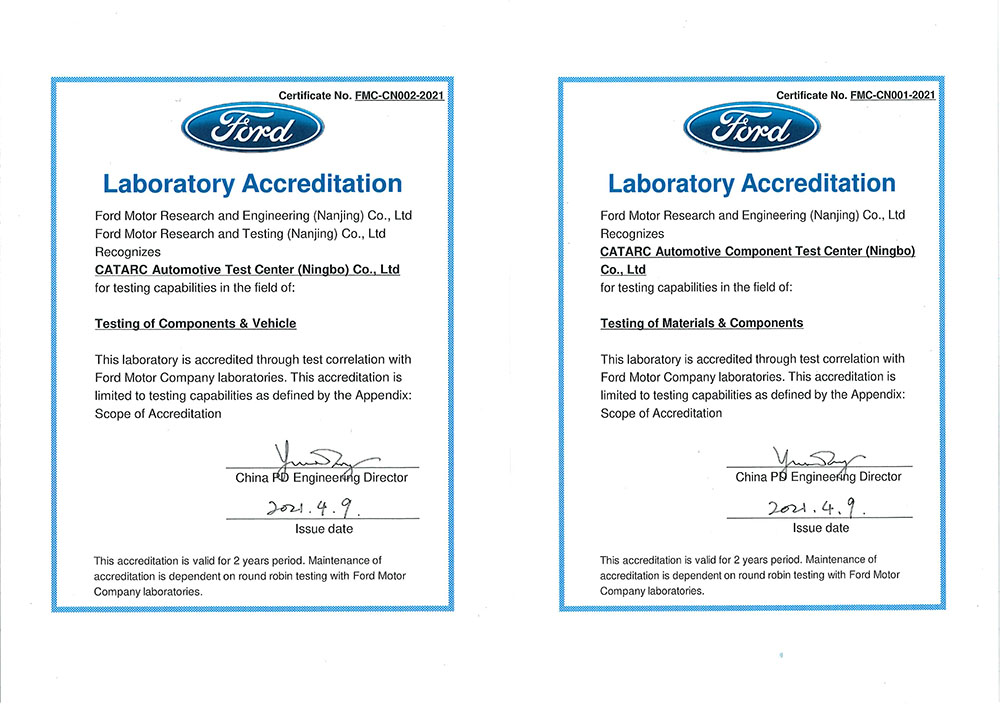 近日,寧波檢驗中心下屬兩家公司中汽研汽車檢驗中心(寧波)有限公司、中汽研汽車零部件檢驗中心(寧波)有限公司順利通過現(xiàn)場實驗室評審和技術(shù)比對,獲得福特汽車整車及零部件認可資質(zhì)。