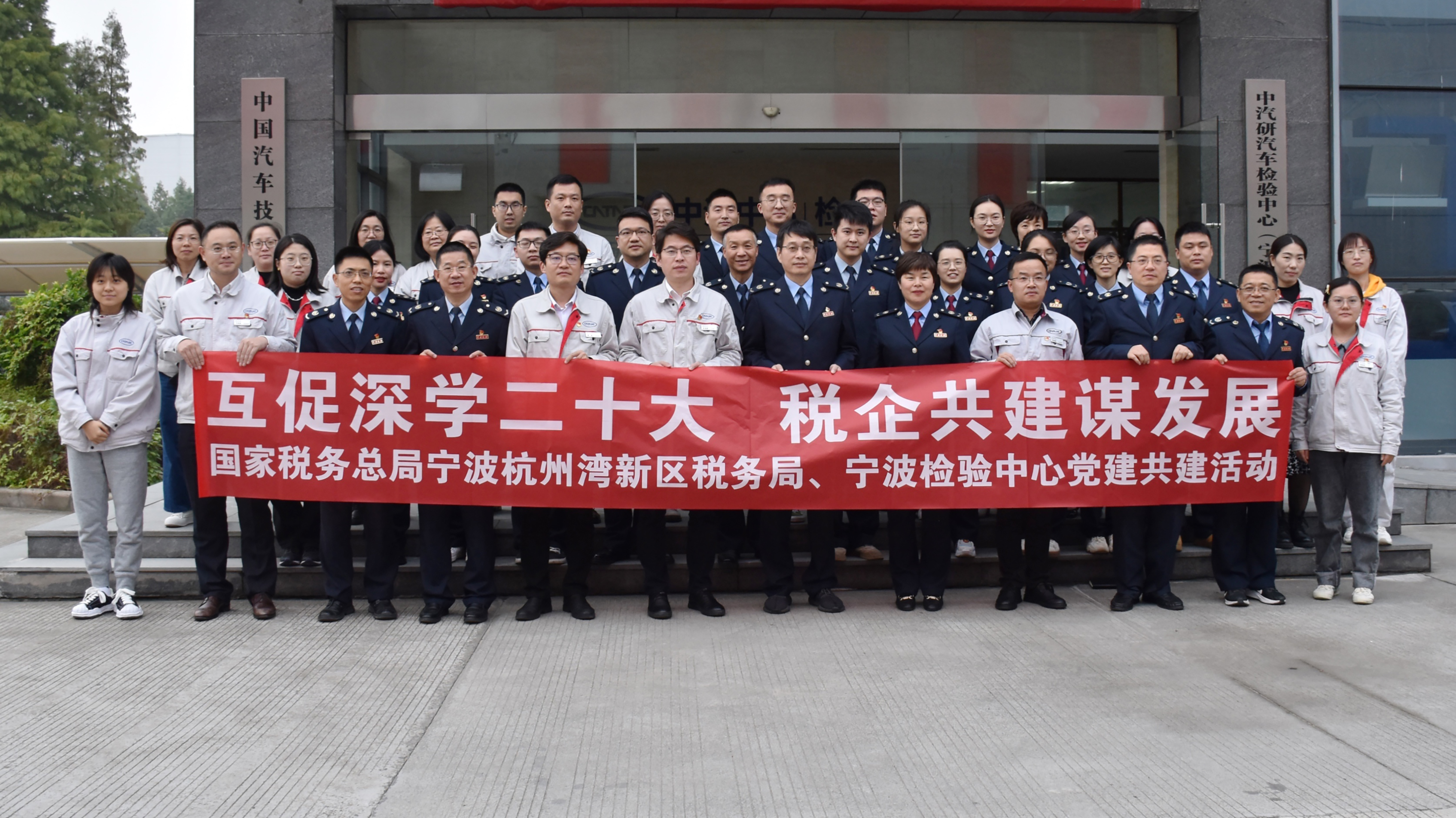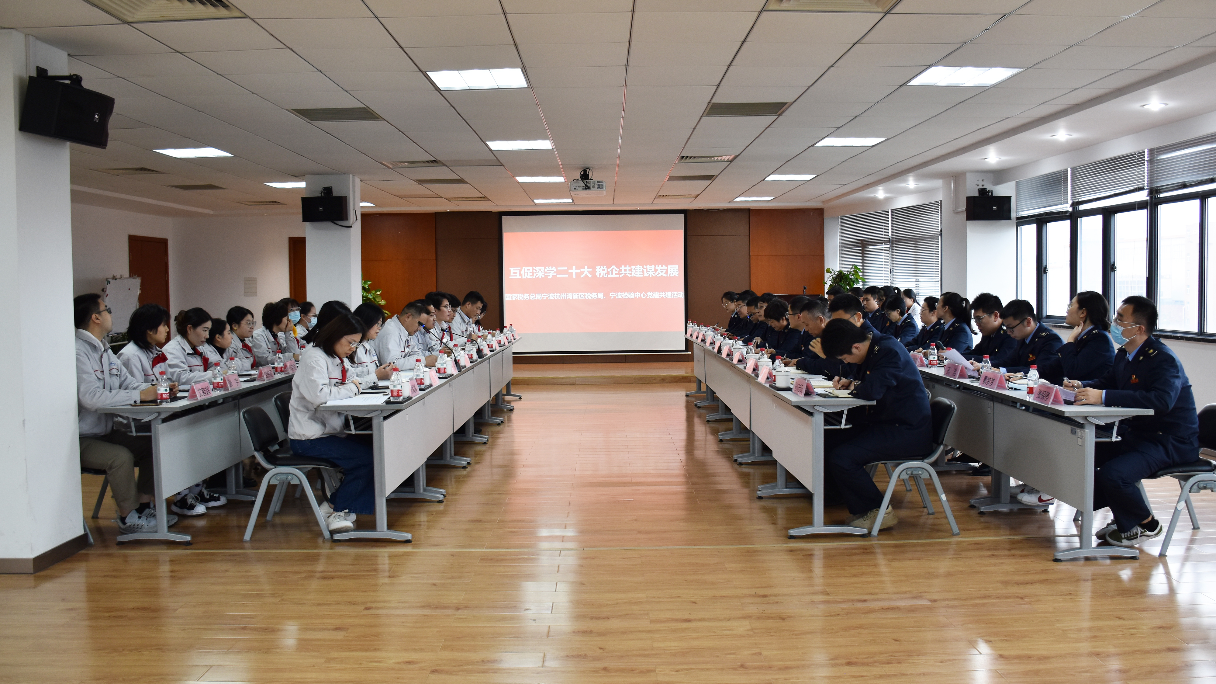 為貫徹落實(shí)黨的二十大精神,有力推動(dòng)黨建與業(yè)務(wù)深度融合,11月15日,國家稅務(wù)總局寧波杭州灣新區(qū)稅務(wù)局黨委書記、局長楊斌,黨委委員、副局長、機(jī)關(guān)黨委書記龔建沖帶領(lǐng)稅務(wù)局第三、第四黨支部黨員代表一行赴寧波檢驗(yàn)中心開展“互促深學(xué)二十大 稅企共建謀發(fā)展”聯(lián)學(xué)共建活動(dòng)。寧波檢驗(yàn)中心黨總支書記、總經(jīng)理李海斌,寧波檢驗(yàn)中心黨總支委員、副總經(jīng)理郭勇,寧波檢驗(yàn)中心黨員領(lǐng)導(dǎo)干部及代表參加活動(dòng)?;顒?dòng)由寧波檢驗(yàn)中心黨總支委員、副總經(jīng)理朱曉勇主持。