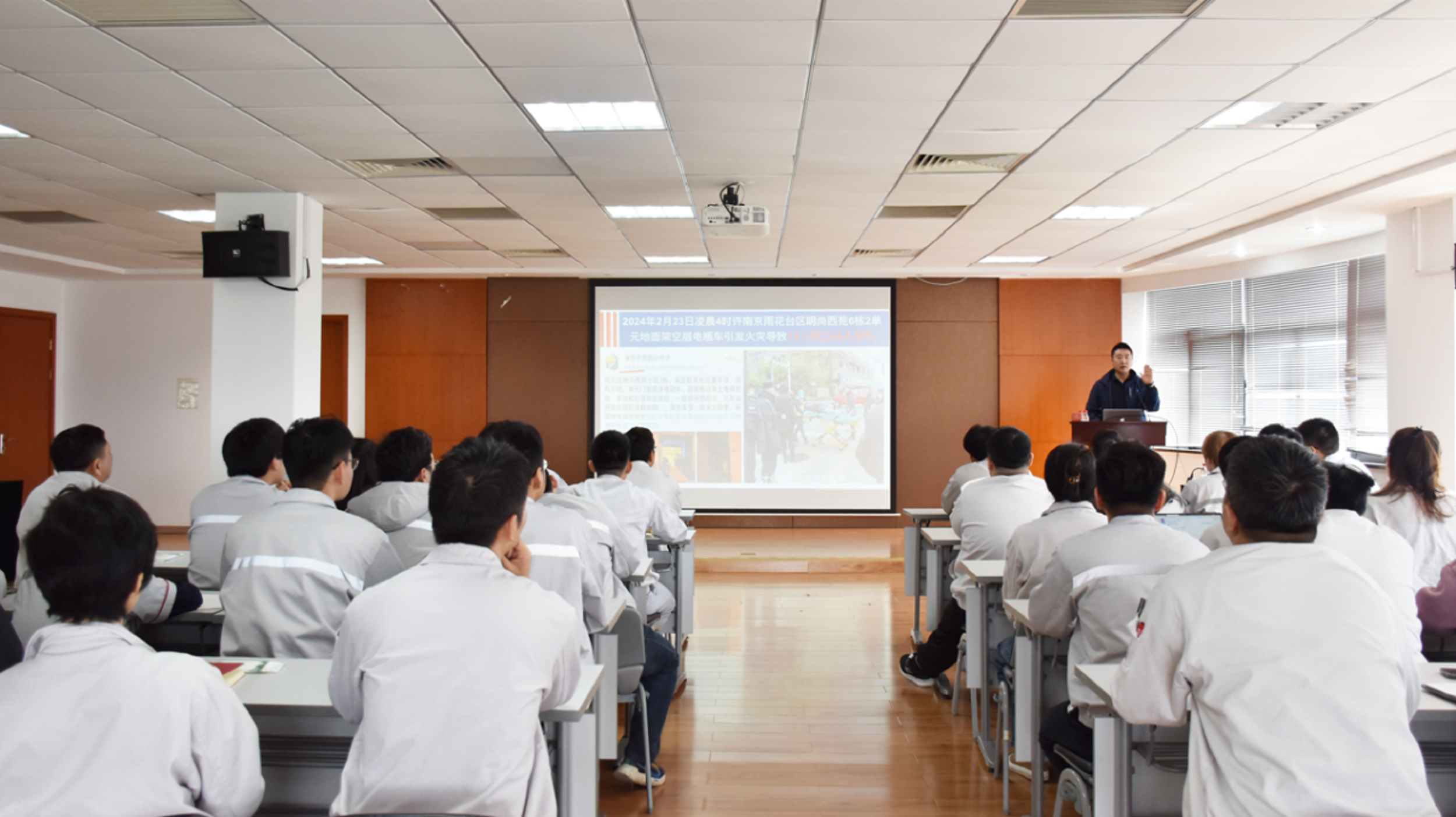 根據(jù)安委辦〔2024〕7號《關于做好生產安全事故應急預案演練工作的通知》要求,切實提高員工火災事故應急處置能力,4月11日,寧波檢驗中心邀請寧波市防火知識中心專家開展防火知識培訓暨火災逃生演練。