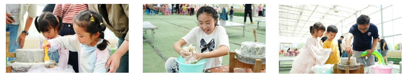 接下來,大家分別體驗了敲拓然、石磨豆?jié){、繪制風箏等活動。