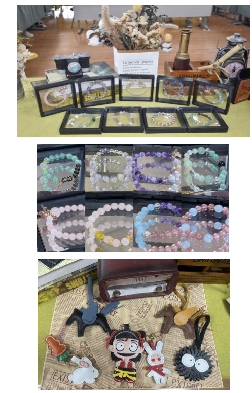 制作現(xiàn)場(chǎng)氣氛高漲,每個(gè)人都全神貫注,用心領(lǐng)悟著匠人精神,沉浸于打造 專屬作品之中。在老師悉心的指導(dǎo)下,大家細(xì)心創(chuàng)作出這一件件精美作品,瞧, 有憨態(tài)可掬的哪吒鑰匙扣;有別具一格的卡包;還有色彩斑斕的水晶手鏈,顆顆 水晶交相輝映,精美絕倫 。