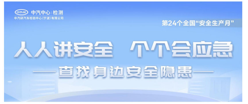 為深入貫徹落實(shí)國家關(guān)于安全生產(chǎn)的重要決策部署,強(qiáng)化安全意識,提升管理水平,有效防范和遏制各類生產(chǎn)安全事故的發(fā)生,根據(jù)中汽中心安全生產(chǎn)工作要求,寧波檢驗(yàn)中心緊扣“人人講安全、個個會應(yīng)急——查找身邊安全隱患”主題,開展第 24個全國“安全生產(chǎn)月”活動,成果豐碩。