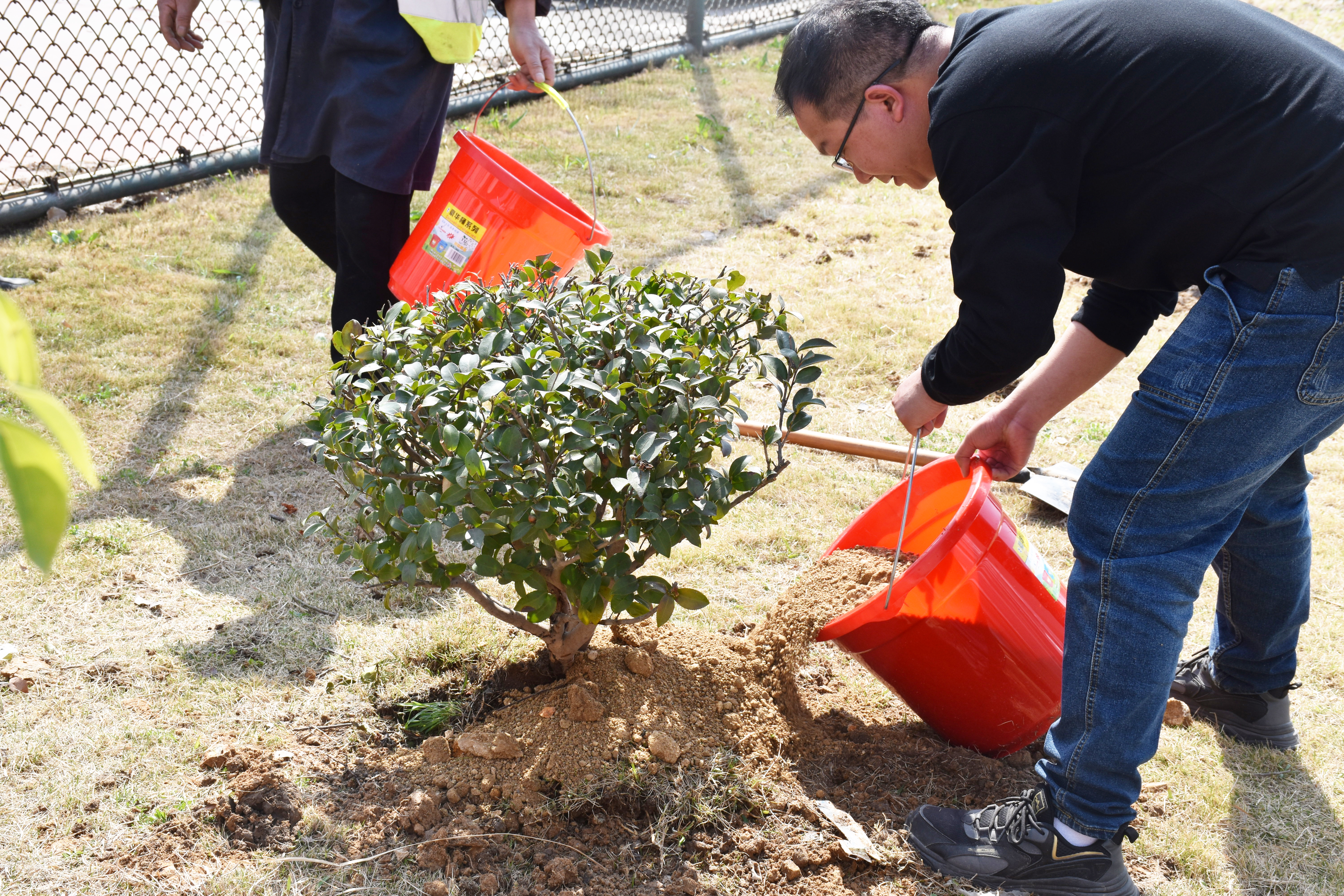 植樹現(xiàn)場,大家有序分工、相互配合,個個熱情高漲、干勁十足,鏟土填坑、揮鍬培土、夯實土層、澆水灌根…井然有序地開展種植?;顒友埩斯飨f洪波與大家分享、交流種植經驗,讓大家親身體驗種植的快樂,收獲滿滿。
